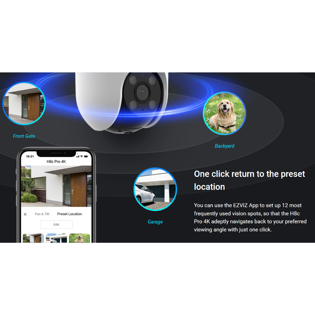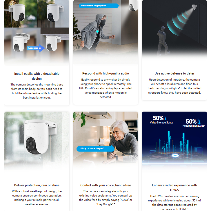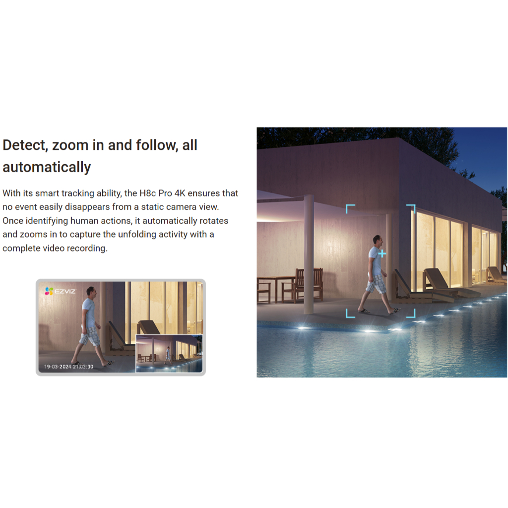 H8C Pro 8MP 4K EZVIZ Outdoor Smart CCTV Wi-Fi Pan & Tilt Smart Home Camera Color Night Vision 2WAY-AUDIO H.265 2.4GHZ -