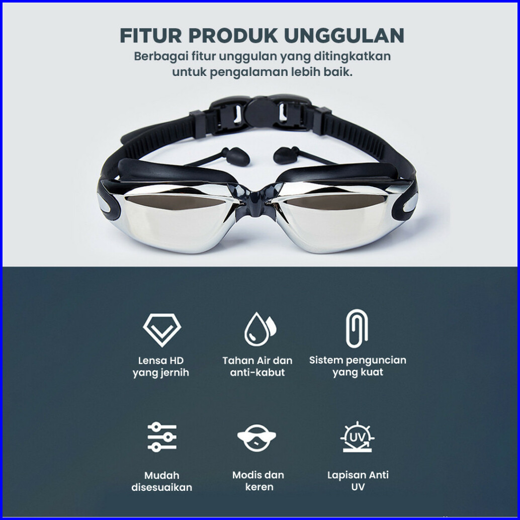 Xin Yue Kacamata Renang Dewasa Lensa Minus Sillicon Anti Fog Embun Uv Protection Penutup Telinga
