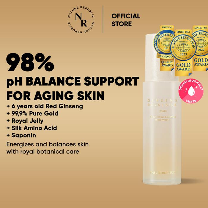 NATURE REPUBLIC GINSENG ROYAL SILK TONER 130ML | PREMIUM HYDRATING ANTI AGING TONER, BRIGHTENING, PH BALANCE WITH RED GINSENG, SILK AMINO ACID, ROYAL JELLY, NIACINAMIDE & ADENOSINE - TONER