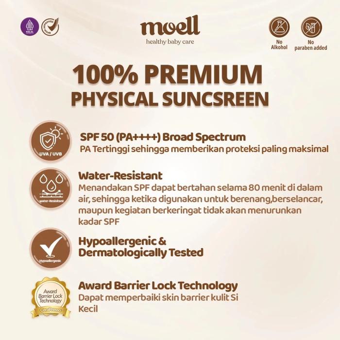 MOMS_ MOELL PHYSICAL SUNSCREEN 30GR | SUNBLOCK WAJAH BADAN BABY ANAK BAYI 6 BULAN S/D DEWASA - MOELL SUNSCREEN 30GR