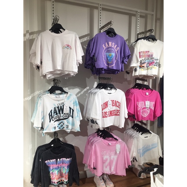 Crop Top Bershka Original Katun Print XS-L
