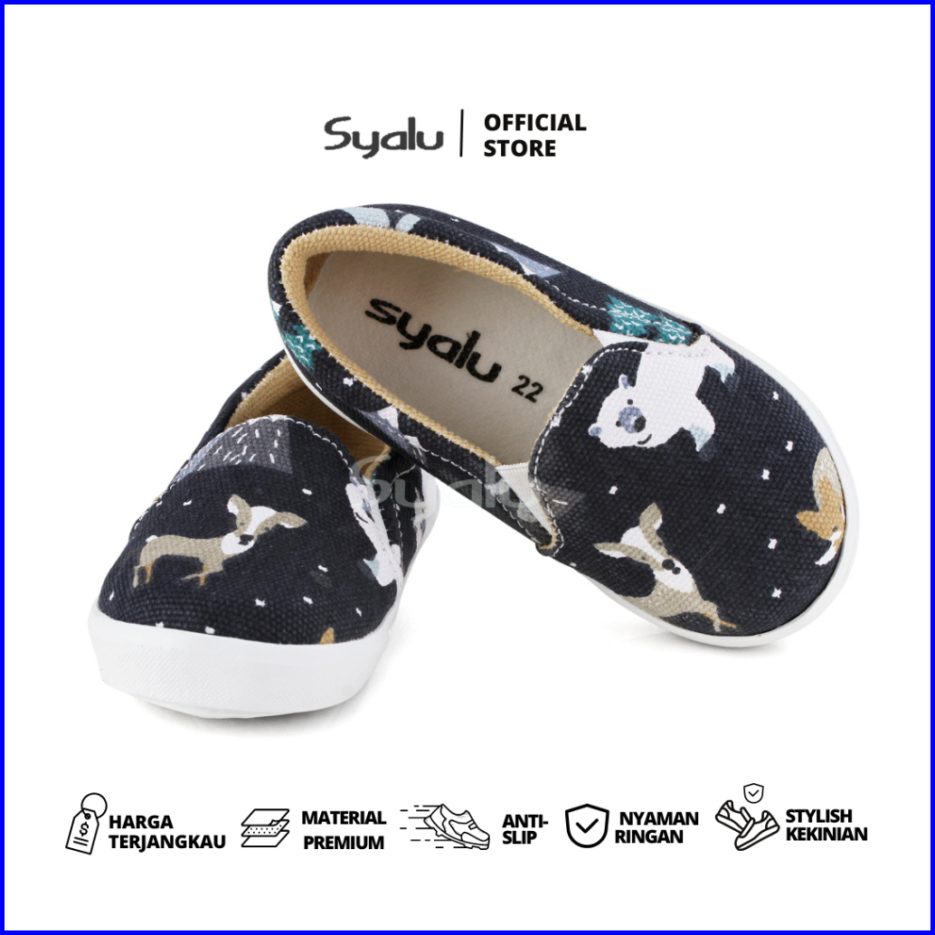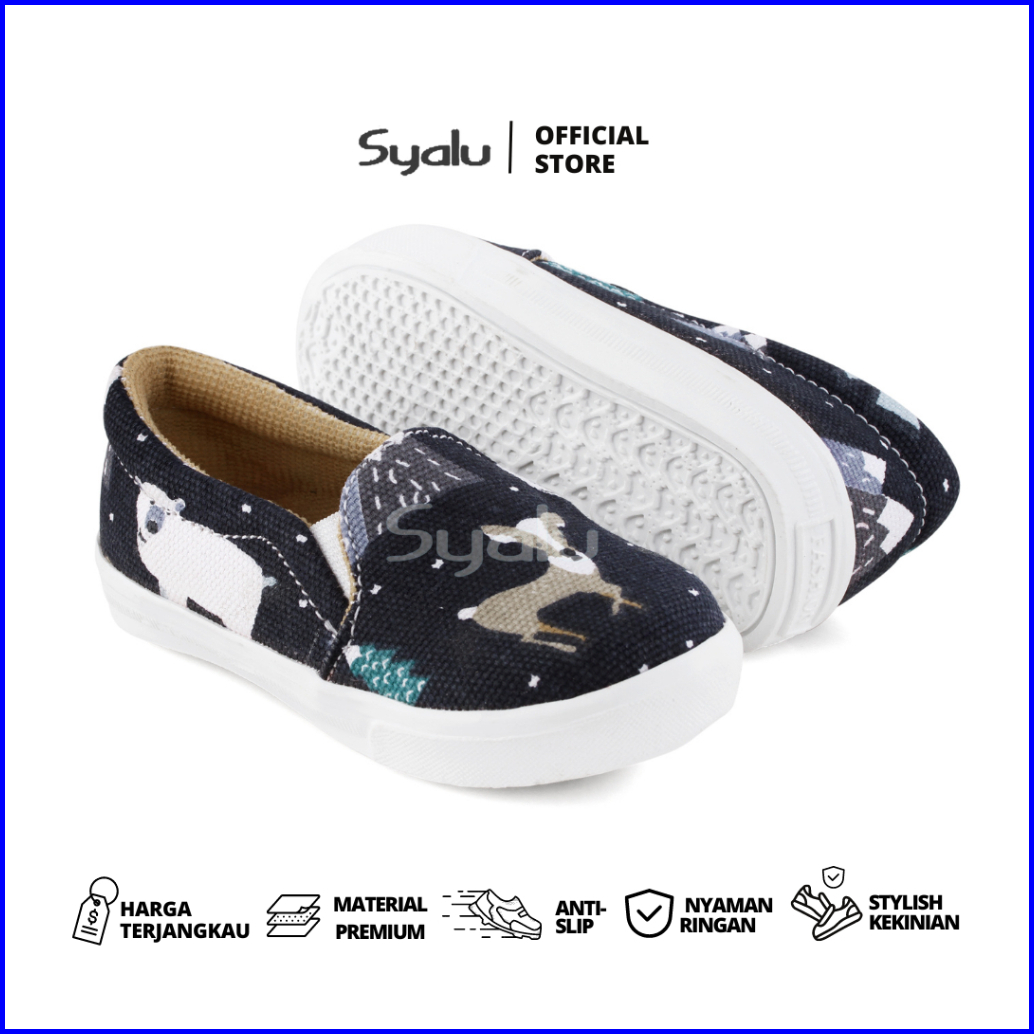 Syalu Sepatu Anak Slip On Motif Beruang Bahan Canvas E01 Beruang