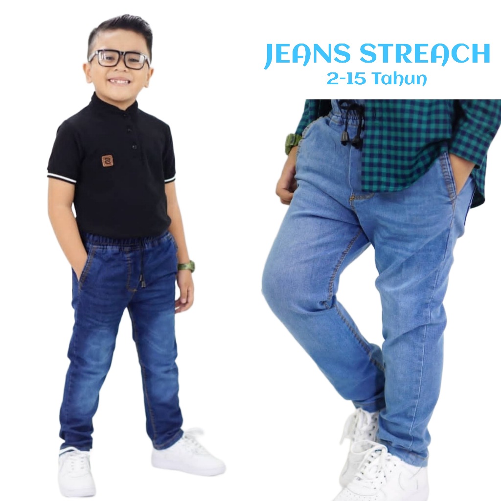 Celana Jeans Panjang Anak Laki-Laki Usia 2-15 Tahun Bawahan Denim Streach Slim Fit Anak Cowok