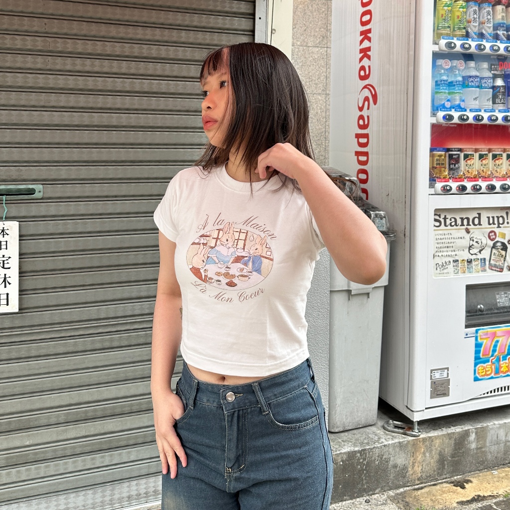 Crop Tee A la Maison Black & Broken White Baby Tee - Between Skies
