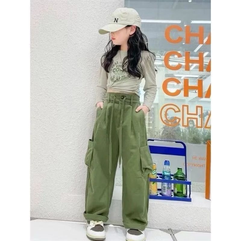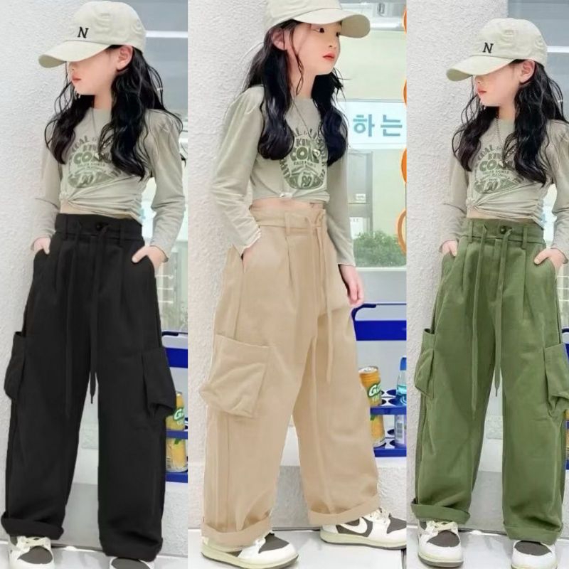 Celana Panjang Anak Cargo Perempuan Korean Style Umur 7-12Th