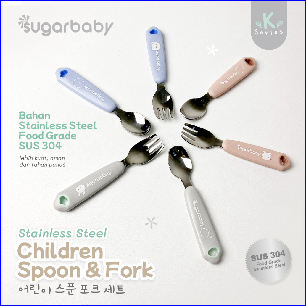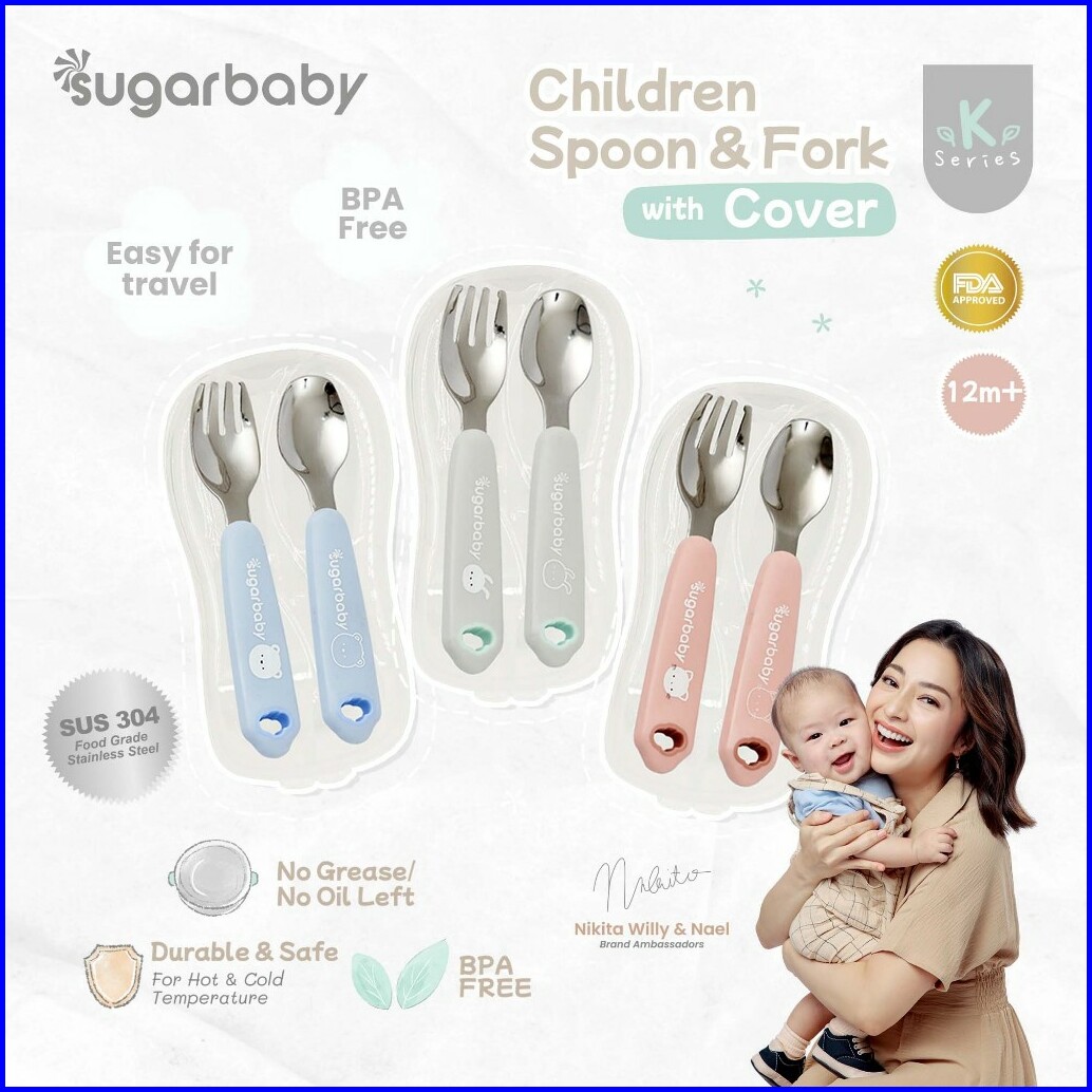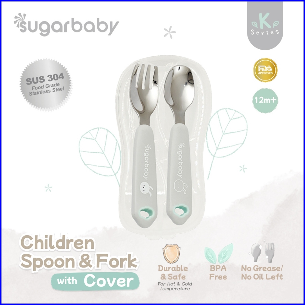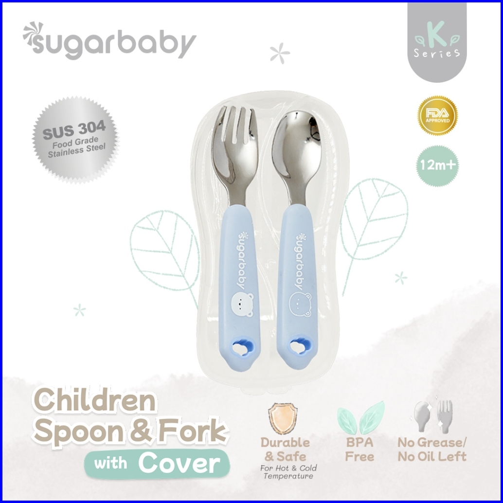 Sugar Baby Stainless Steel Children Spoon Fork With Cover Sendok Garpu Stainless Sugarbaby Dengan Penutup Case