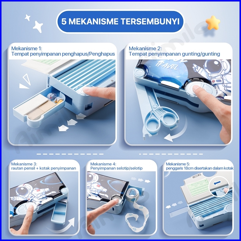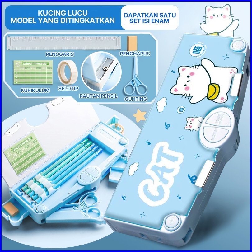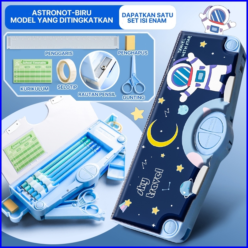 Ready Aimilo Tempat Pensil Multifungsi Kotak Pensil Anak Lengkap Peruncing Gunting Isolasi Penghapus Penggaris Alat Tuli