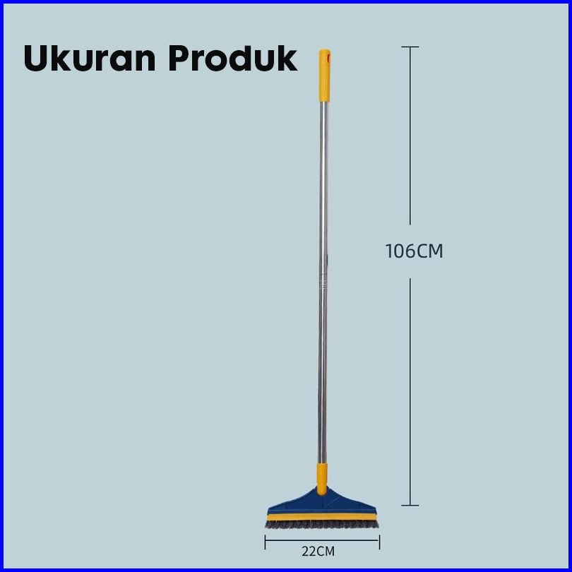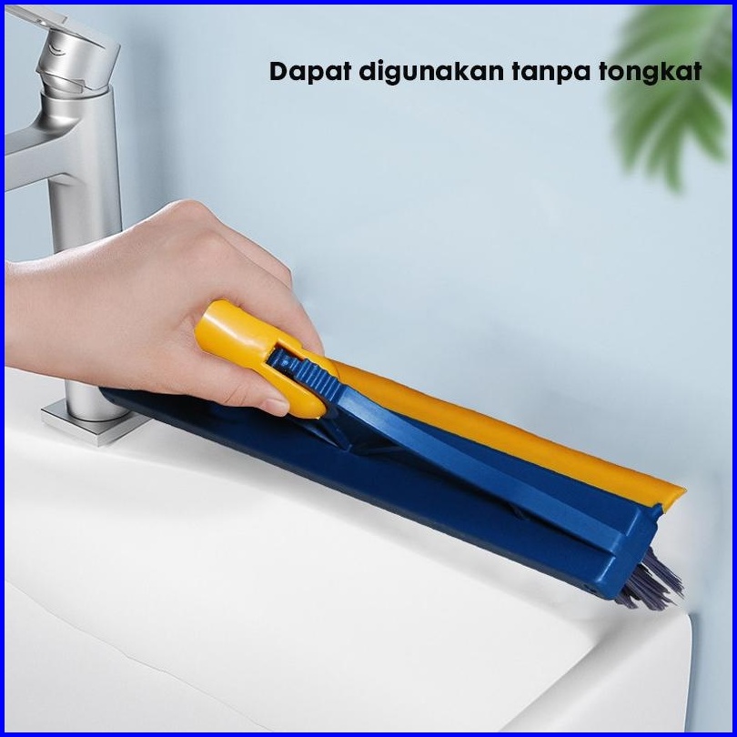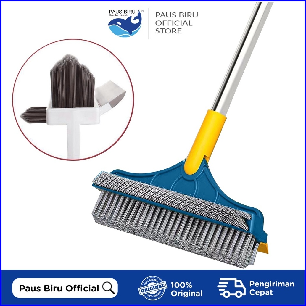 Paus Biru - Sikat Lantai Multifungsi 3 In 1 Sapu Sikat Wiper Sikat Toilet Lantai Sikat Dorong Gagang Panjang