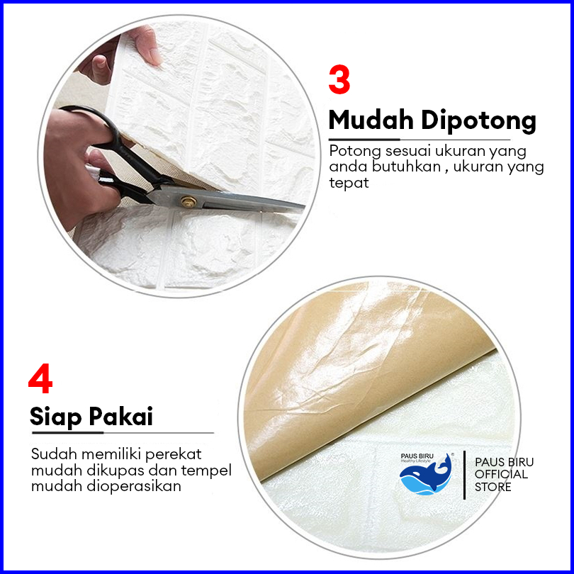 Paus Biru - Paket 10 Lembar Wallpaper Dinding Foam Timbul 3d Bata Classic Brick 70x77cm