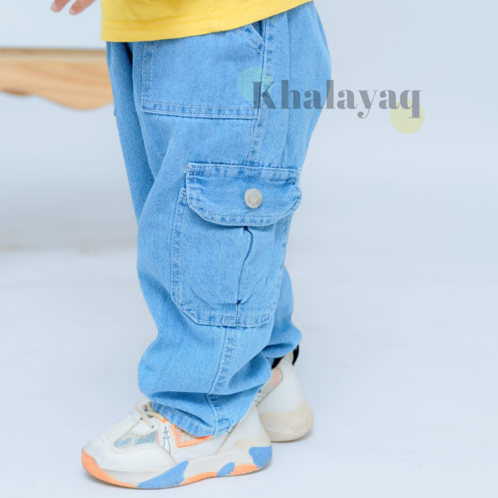 Celana Panjang Cargo Anak Laki 1 7 Tahun Kain Jeans