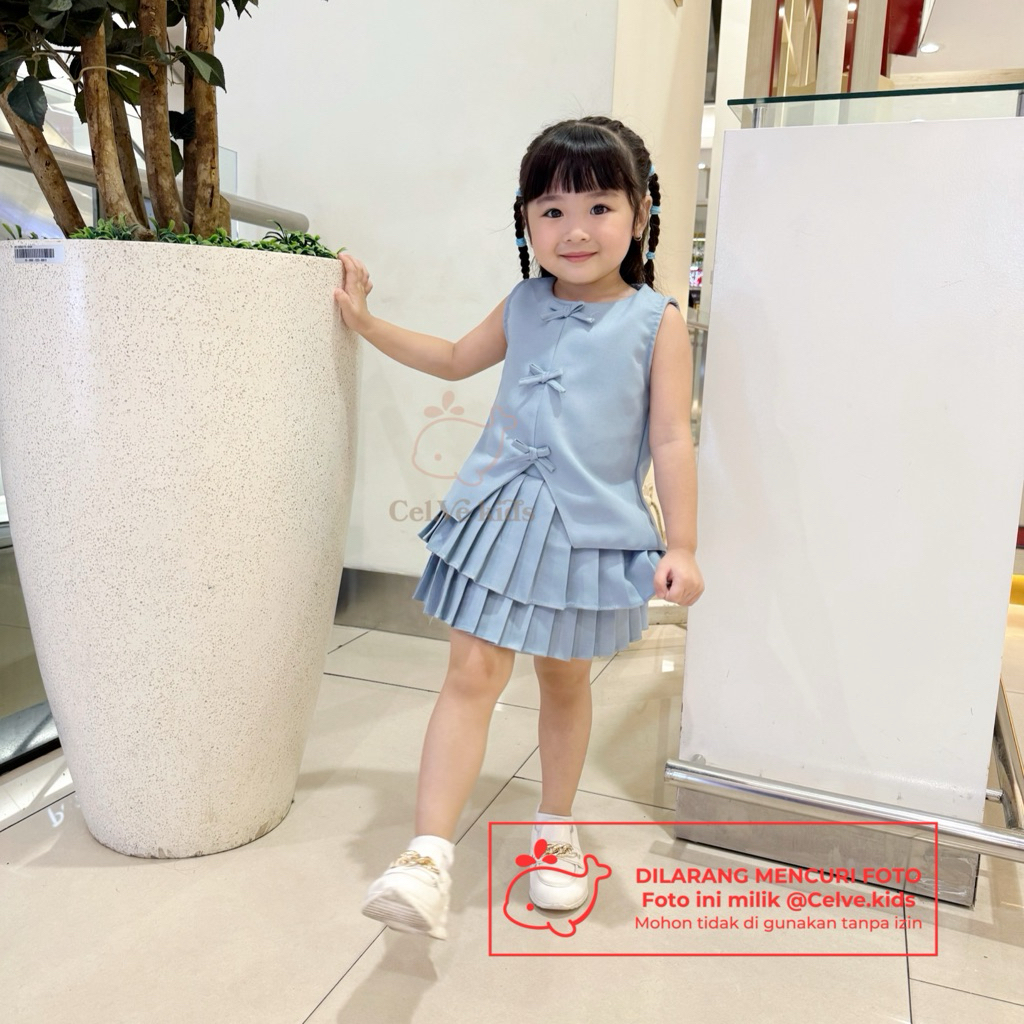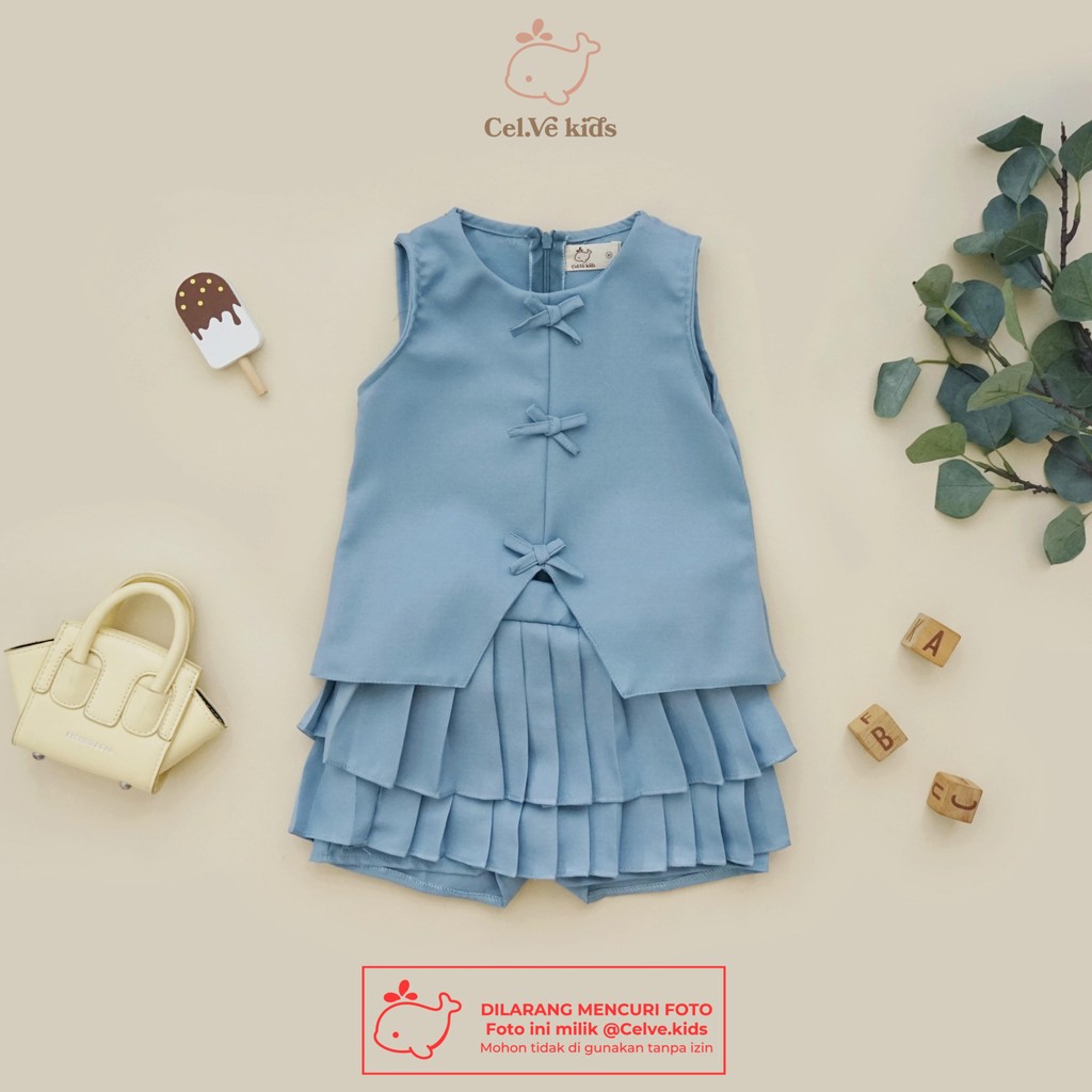 Celvekids - Stelan Hikaru Set Baju Rok Celana Anak Perempuan Korean Style Semiwool Usia 1-8Th