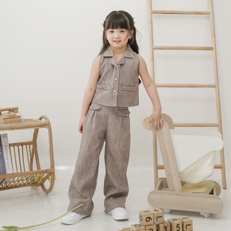 Celvekids - Stelan Nicole Set Baju Rok Celana Anak Perempuan Korean Style Semiwool Usia 1-6Th