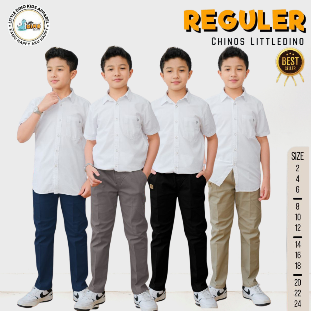Celana Panjang Anak 2 - 15 Tahun Chinos Reguler Pants By Little Dino Black Brown Grey Navy