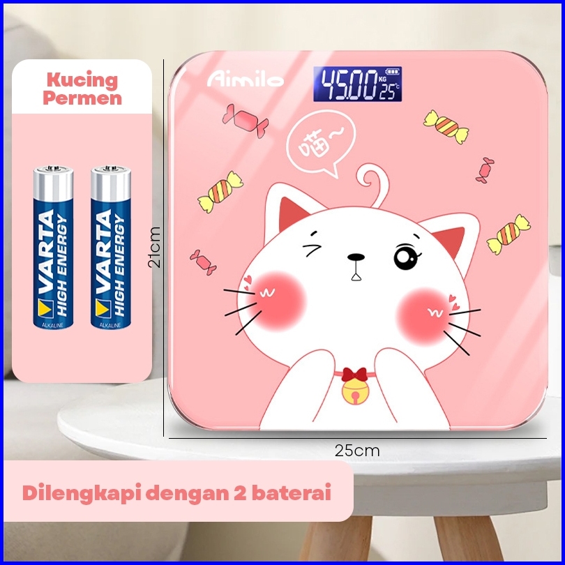 Ready Aimilo Timbangan Badan Digital Kartun Pengukuran Akurat Timbangan Layar Lcd Berat Max 180kg