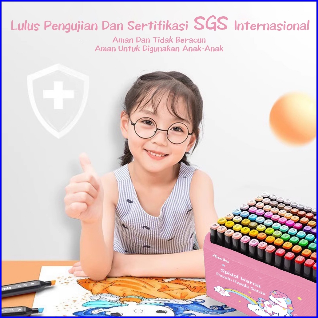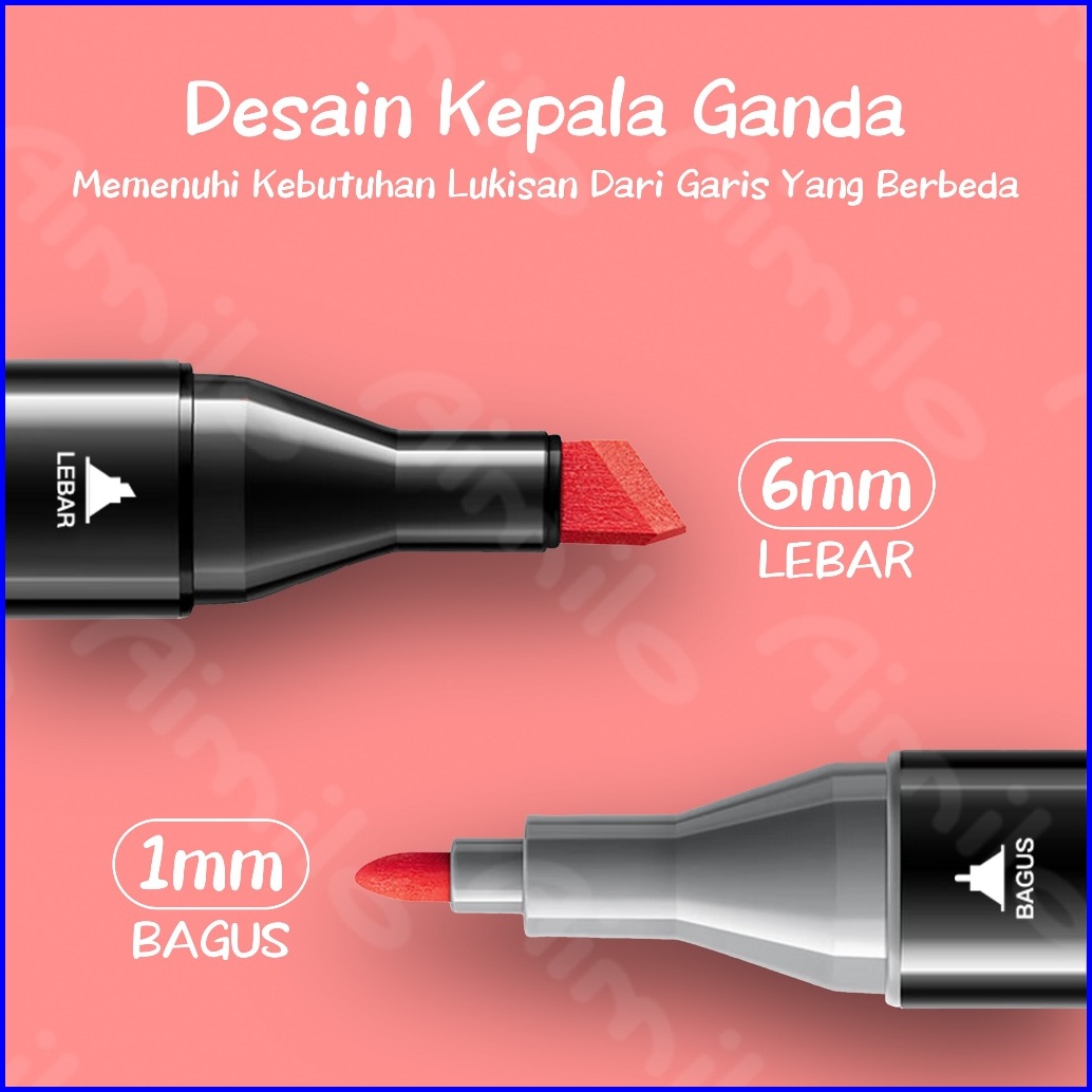 Ready Aimilo Spidol Warna Warni 1 Set Kemasan Kartun Sketch Marker 2 Tip Touch Marker 48 60 80 Warna