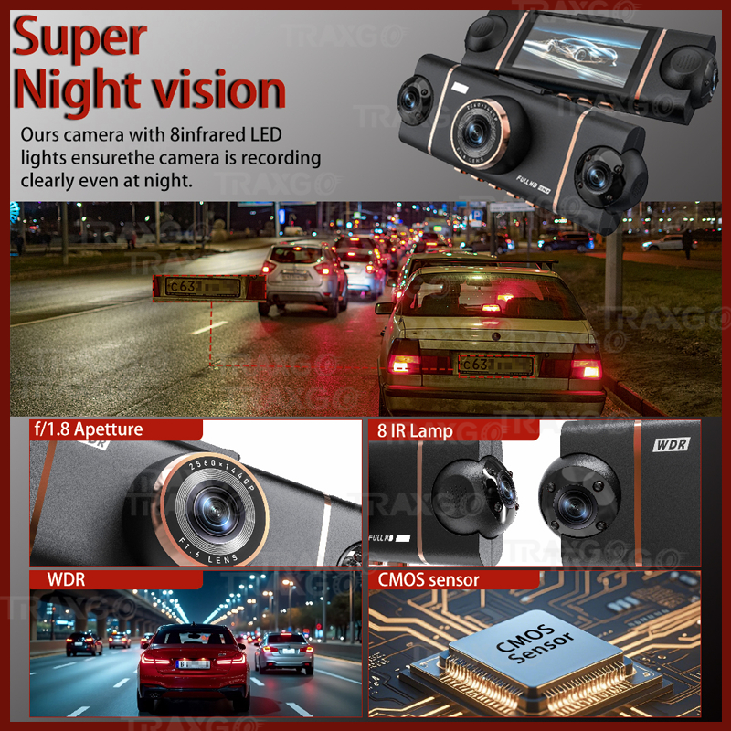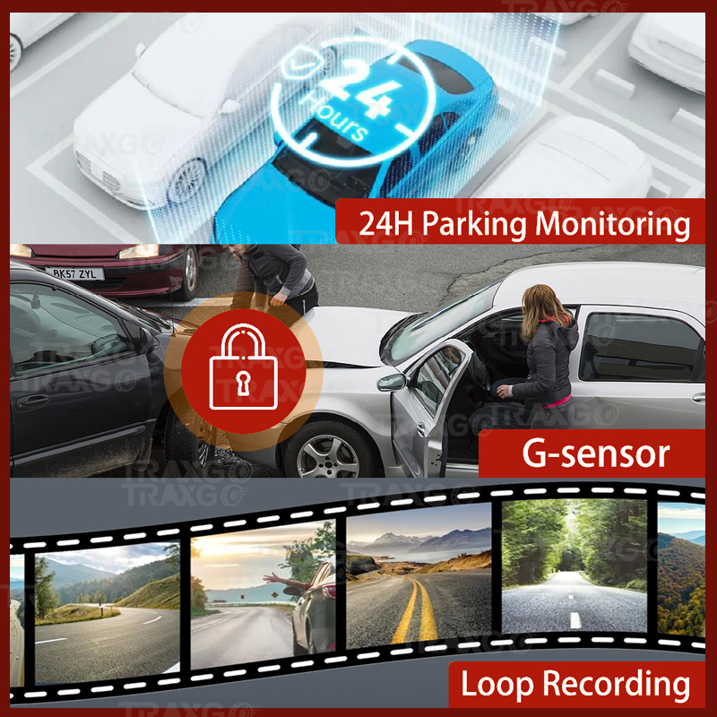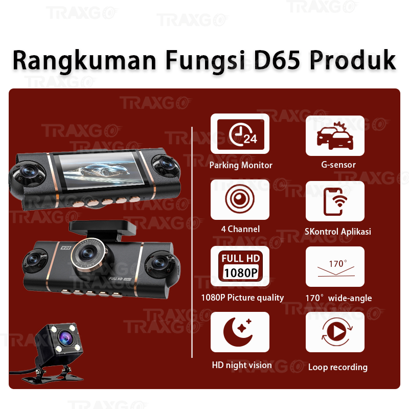 D65 Dash Cam Mobil Empat Kamera - Real 1080p FHD + Pemantauan Parkir 24 Jam + Kontrol Koneksi WiFi Mobile + GSensor + La