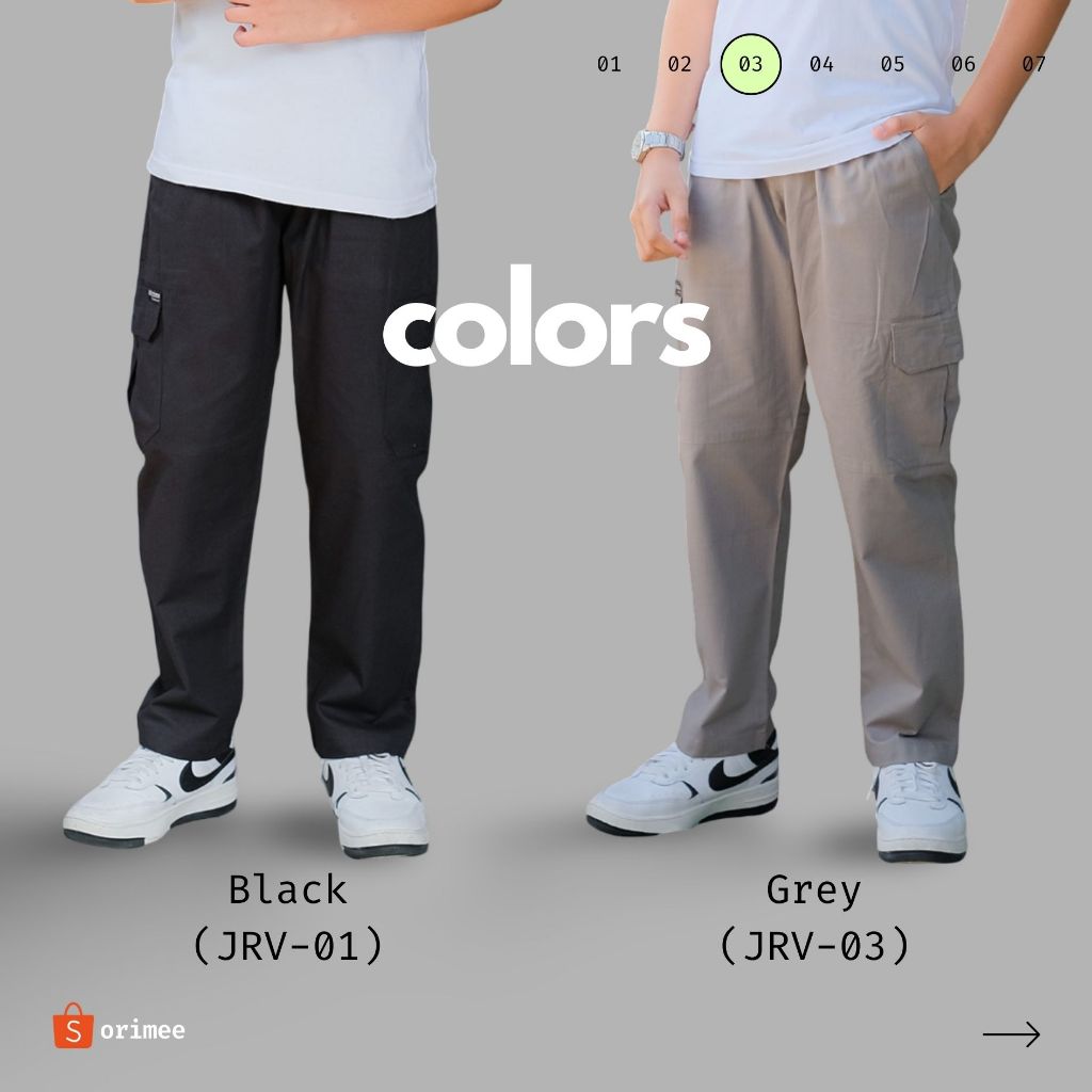 Celana Panjang Cargo Anak Laki Laki Premium Long Cargo Pants Jarvis Hitam Abu Army By Bilhikma