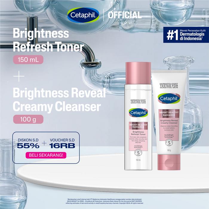CETAPHIL BRIGHT HEALTHY RADIANCE REVEAL CREAMY CLEANSER 100G + BRIGHTNESS REFRESH TONER 150ML - BRC-BRT