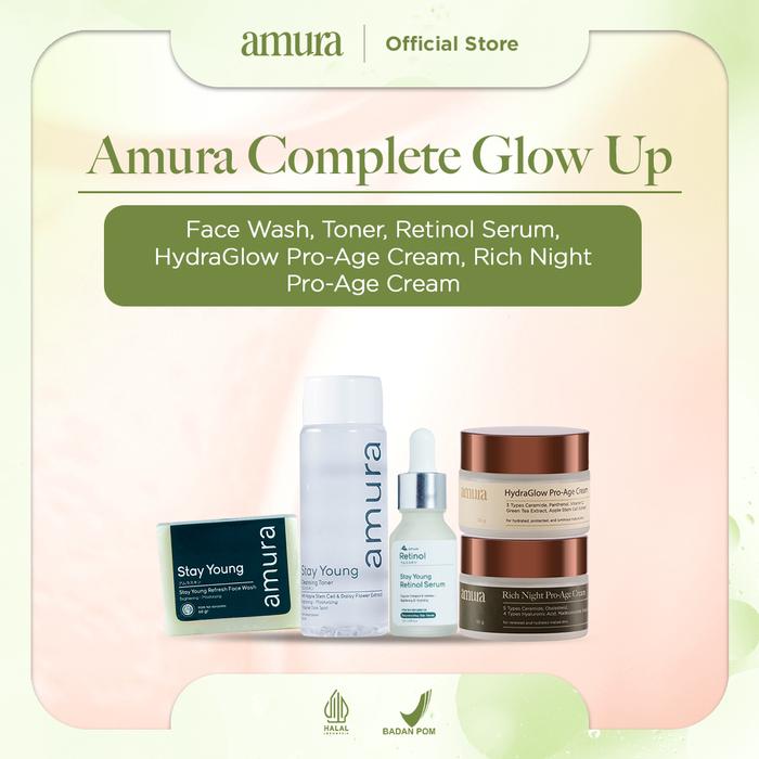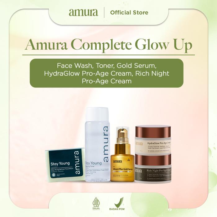 [NEW] BUNDLING AMURA SERIES 3 (SERUM, FACIAL WASH, DAY AND NIGHT CREAM DAN TONER) | ANTI AGING MEMBERSIHKAN MENCERAHKAN - SERUM