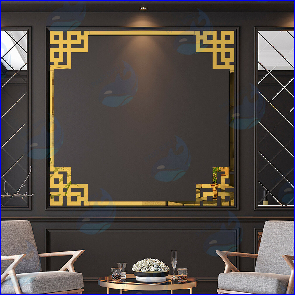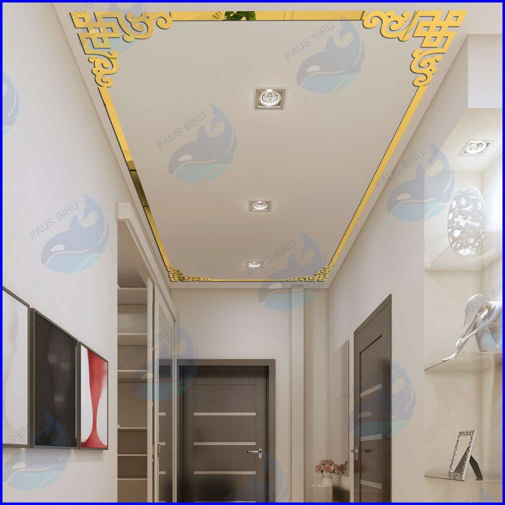 Paus Biru - List Mirror Wall Sticker Sudut Siku Dekorasi Motif Strip Hairline Dekorasi Dinding 10x10cm Per Pcs