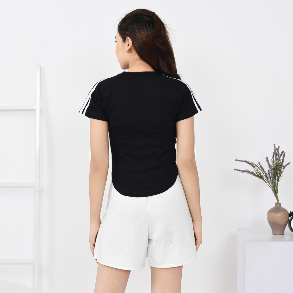 ZOREA Baju Crop Top Kaos Wanita Line Jersey Black Lengan Pendek Korean Style