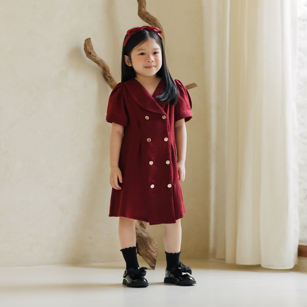 Doobeedam Nora Dress - Dress Anak Perempuan Merah Putih Tweed Natal