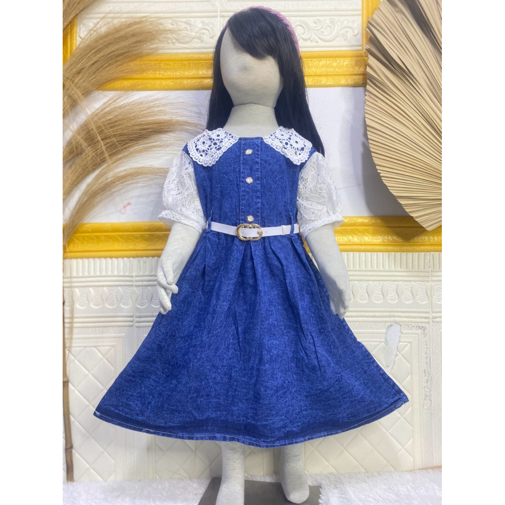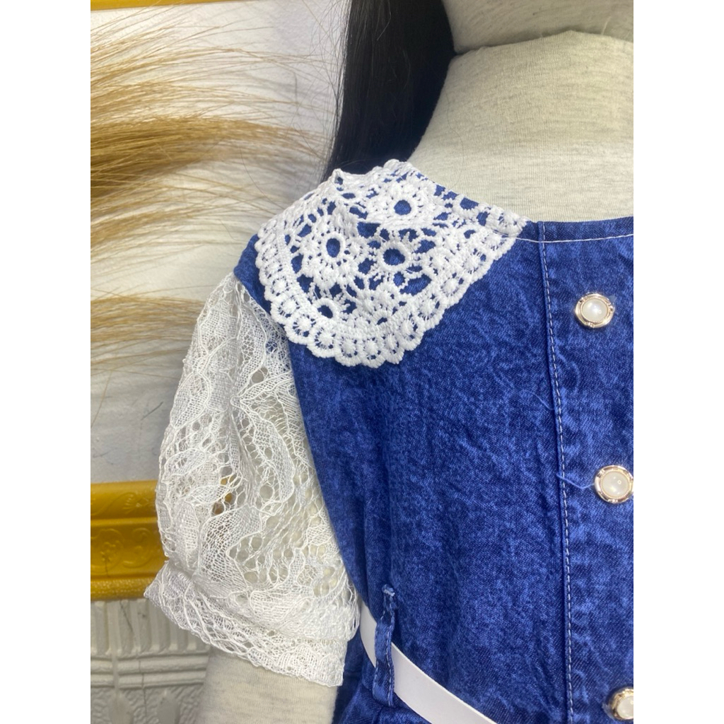 Dress Jeans Mix Brukat Anak Perempuan Usia 3 Tahun - 9 Tahun/Baju Dress Jeans Viral Anak Perempuan/ Baju Viral Anak /Baj