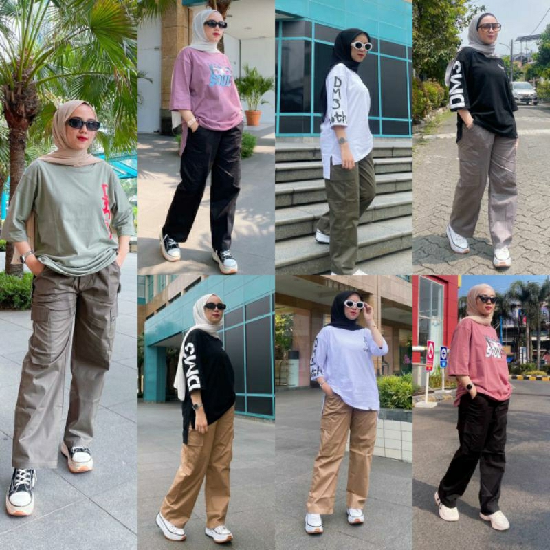 HC- Stelan Cargo Wanita Setelan Kekinian Stelan Celana Cargo Terbaru Bahan Combed 20S Celana Setrit