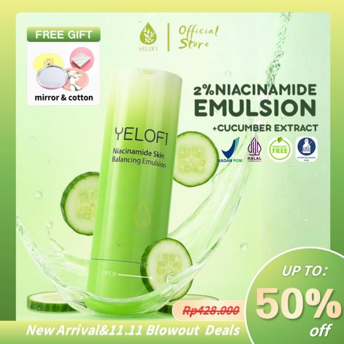 YELOFI NIACINAMIDE SKIN BALANCING EMULSION 50ML - KRIM PENCERAH, PELEMBAB, MOISTURIZER, PERKUAT SKIN BARRIER, BOOST PRODUKSI SEBUM DENGAN CUCUMBER EXTRACT - EMULSION