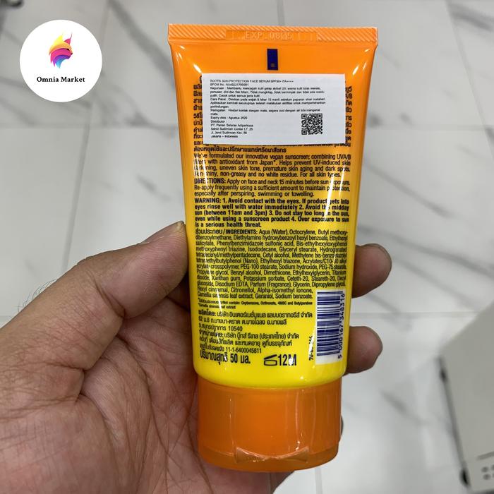 SUNSCREEN BOOTS SUN PROTECTION FACE SERUM SPF50+ PA++++ TABIR SURYA SUN SCREEN 50ML
