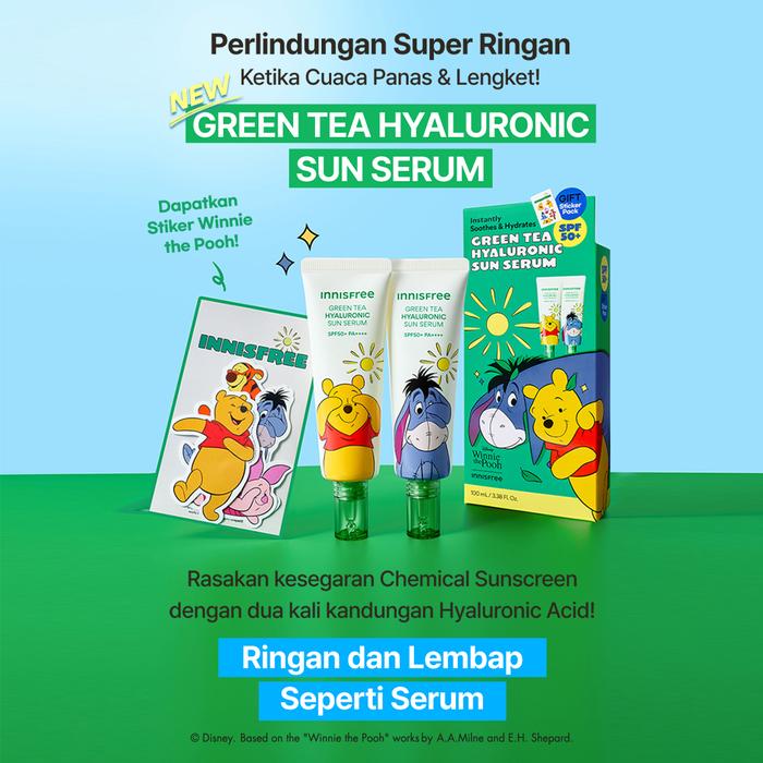 [INNISFREE X WINNIE THE POOH] 50ML + 50ML GREEN TEA HYALURONIC MOIST SUN SERUM SPF 50+ PA++++