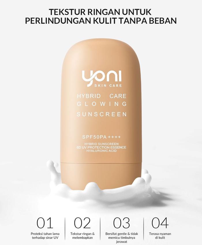 YONI- BUNDLE ISI 2 SUNSCREEN HYBRID CARE GLOWING 50 PA++++ PERLINDUNGAN MAKSIMAL & COCOK UNTUK BERBAGAI JENIS KULIT | Y 172