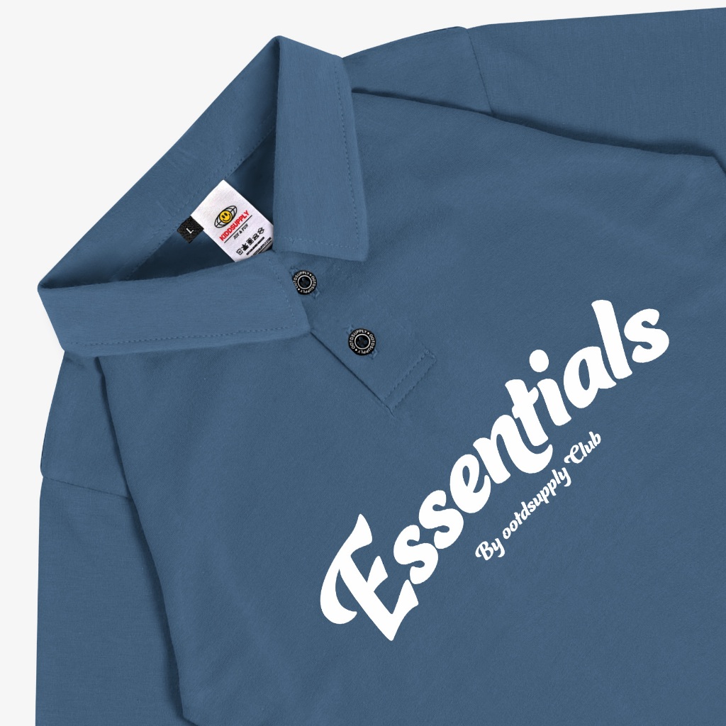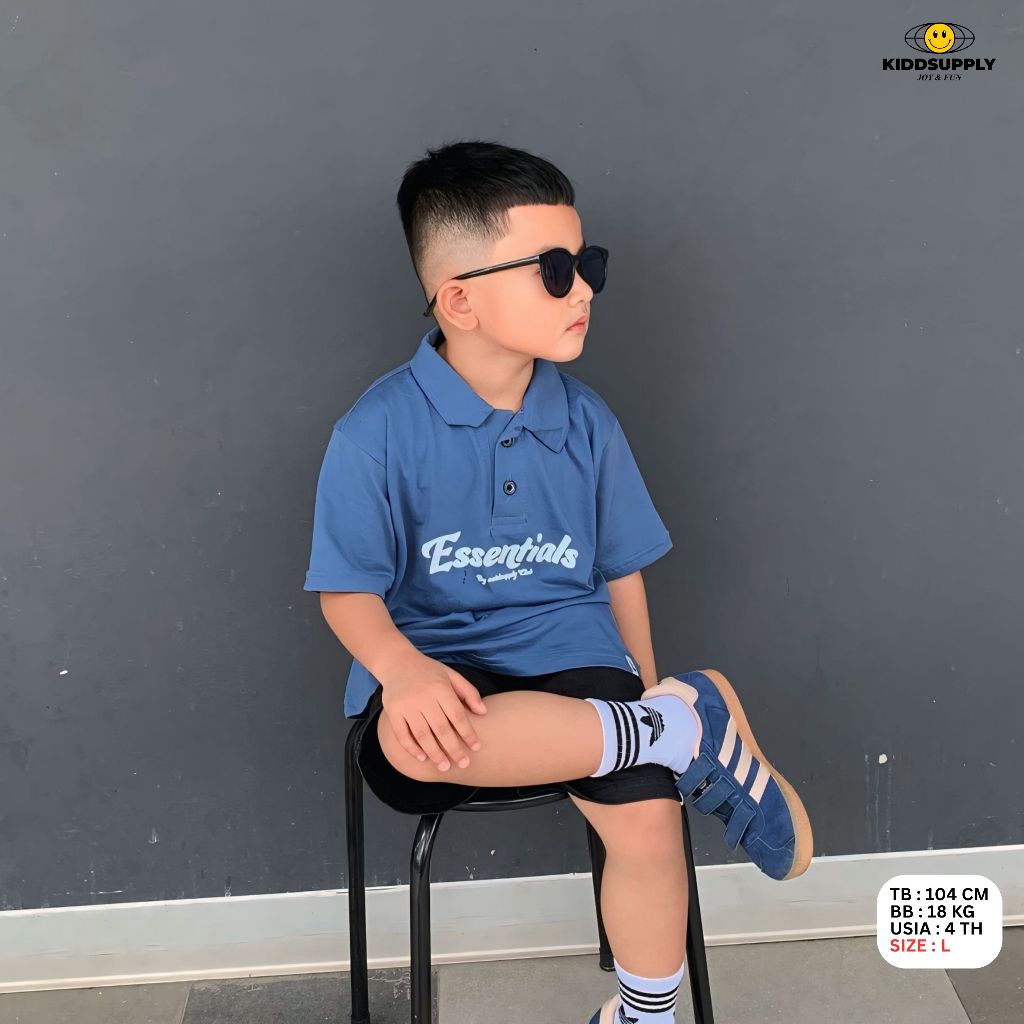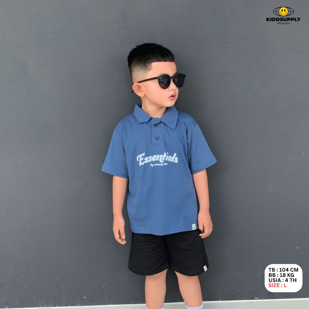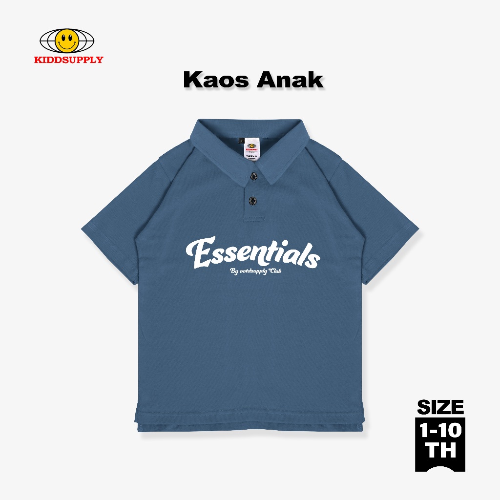 Kiddsupply Kids Polo Shirt Essentials Steel Blue & Black L Kaos Anak Unisex Tspkd002