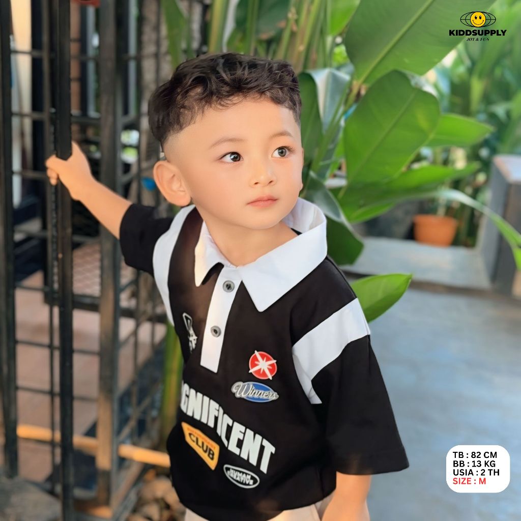 Kiddsupply Polo Rugby Shirt Magnificent Black White L Kaos Anak | Polo Kids Kidsrgb003