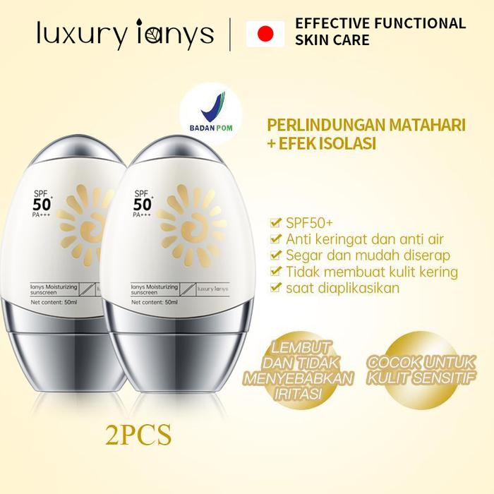 LUXURY IANYS MOISTURIZING SUNSCREEN SPF 50+ PA+++ UVA/ UVB SUNSCREEN 50ML 2PCS BPOM TABIR SURYA MEMPERBAIKI MENCERAHKAN MEMPERBAIKI KUSAM MENYEGARKAN MUKA PENCERAH PERAWATAN WAJAH FACIAL KOSMETIK