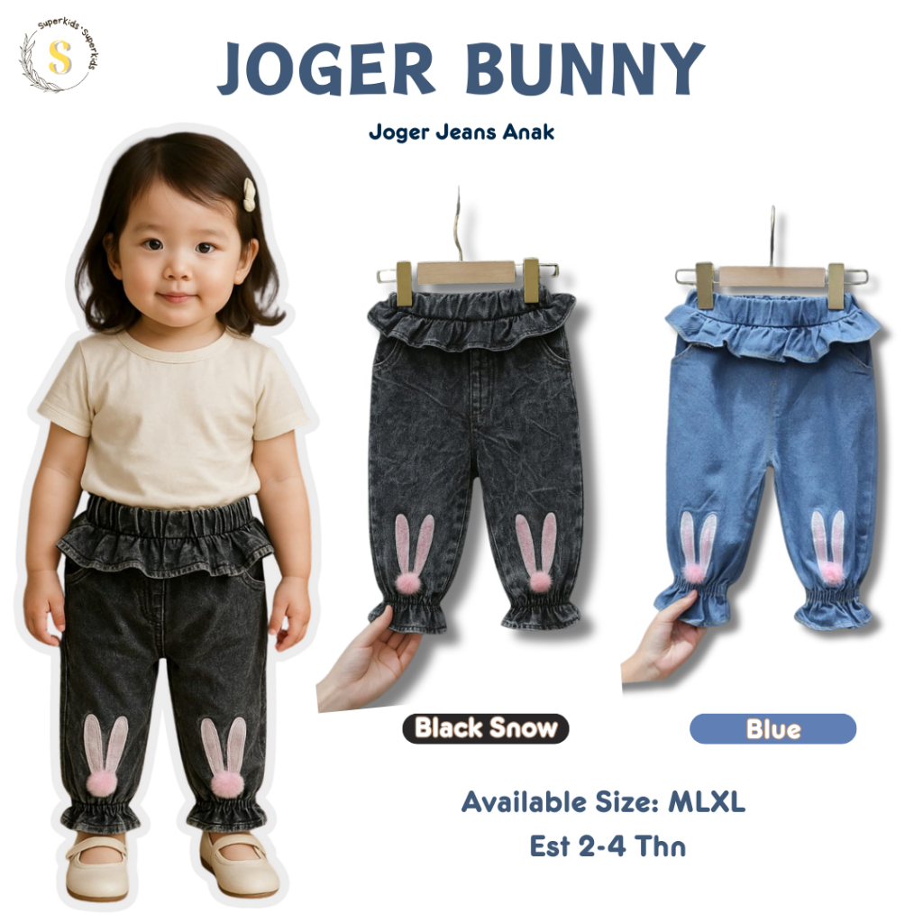 Kidssuper Joger Bunny Celana Panjang Jeans Anak Perempuan Celana Joger Anak Cewek Usia 2-4 Tahun