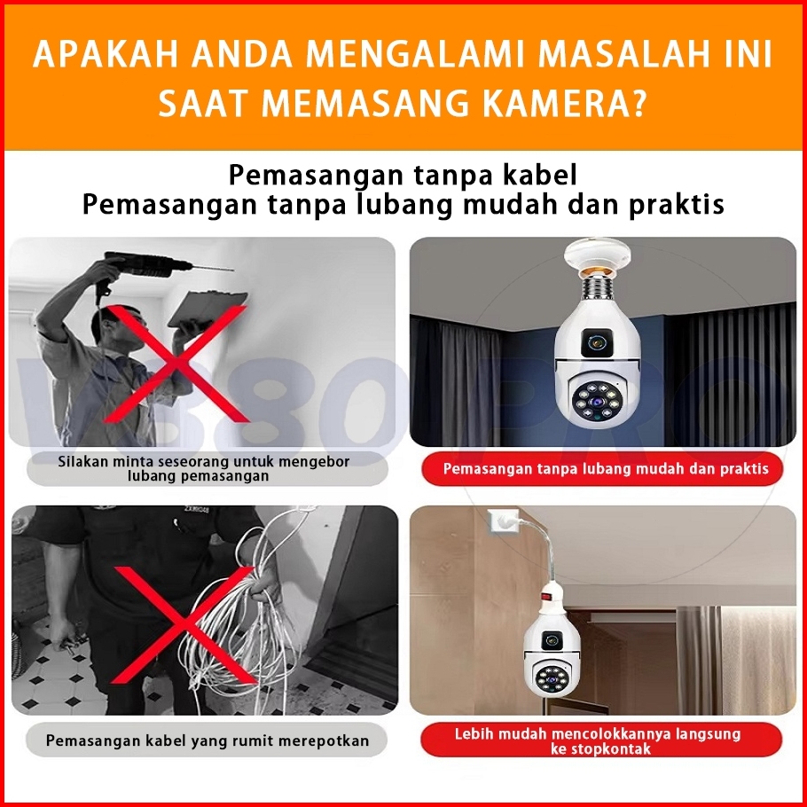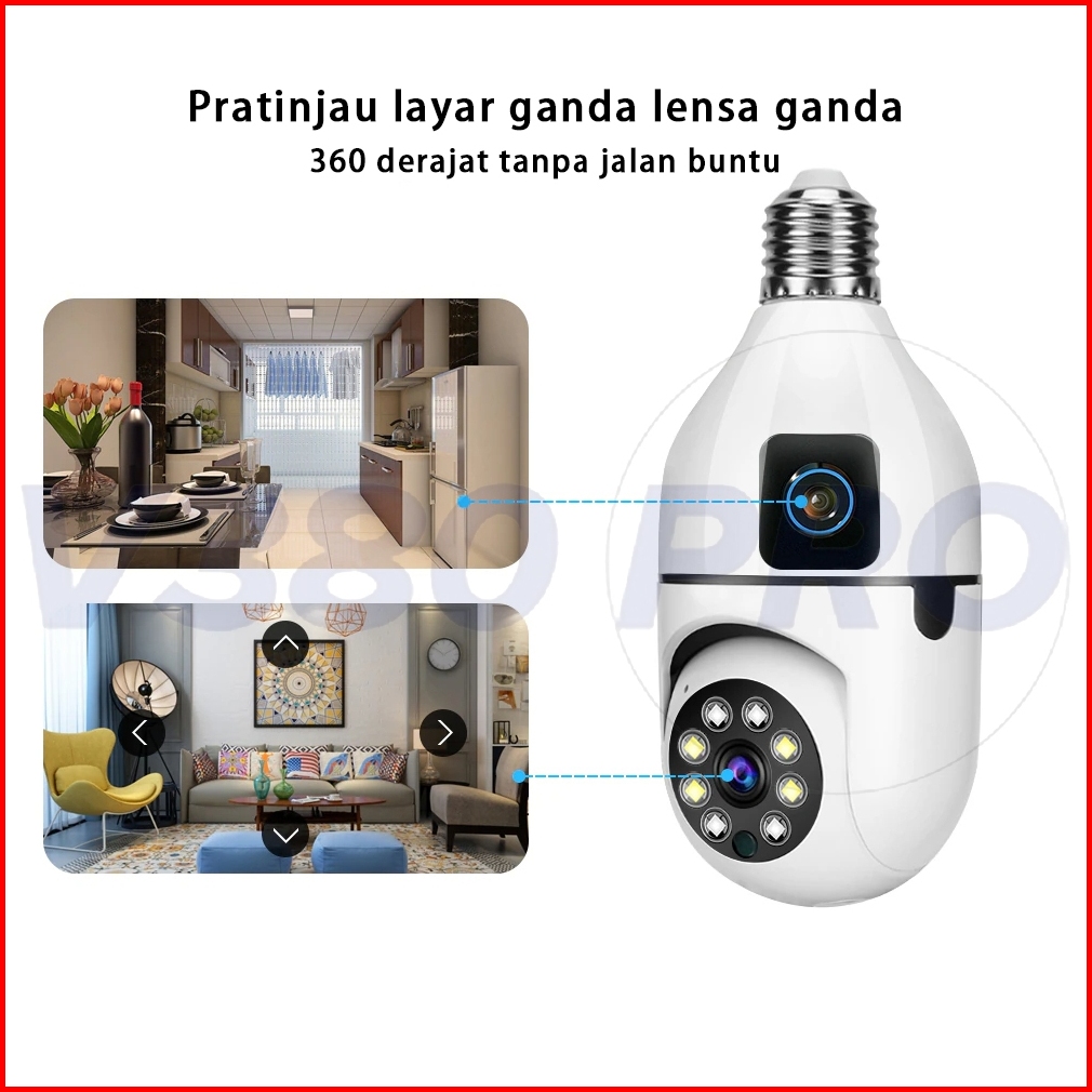V380 Pro Kamera Cctv Bohlam Dual Lensa 8mp Alarm Deteksi Manusia Ai Penglihatan Malam Inframerah