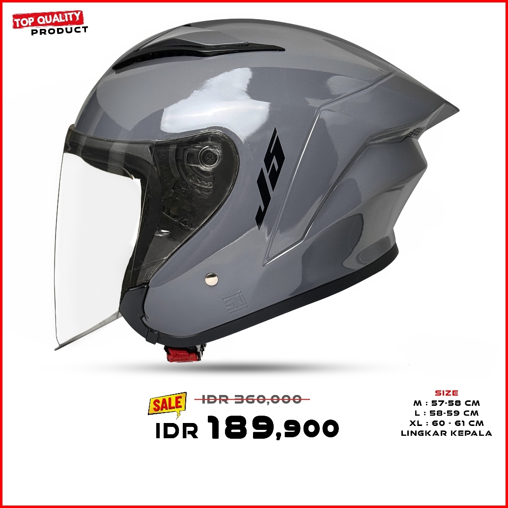 Helm Mla J5 Grey Glosy Kaca Bening Half Face Premium Untuk Pria Dan Wanita Dewasa Sni