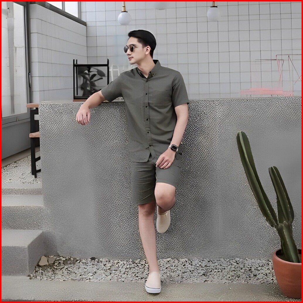 Kemeja Polos Lengan Pendek Pria Putih Merah Maron Hitam Navy Biru Dongker Kerah Shanghai Ciangi Slim