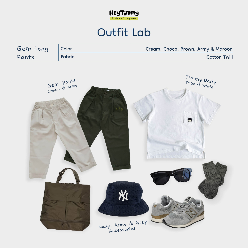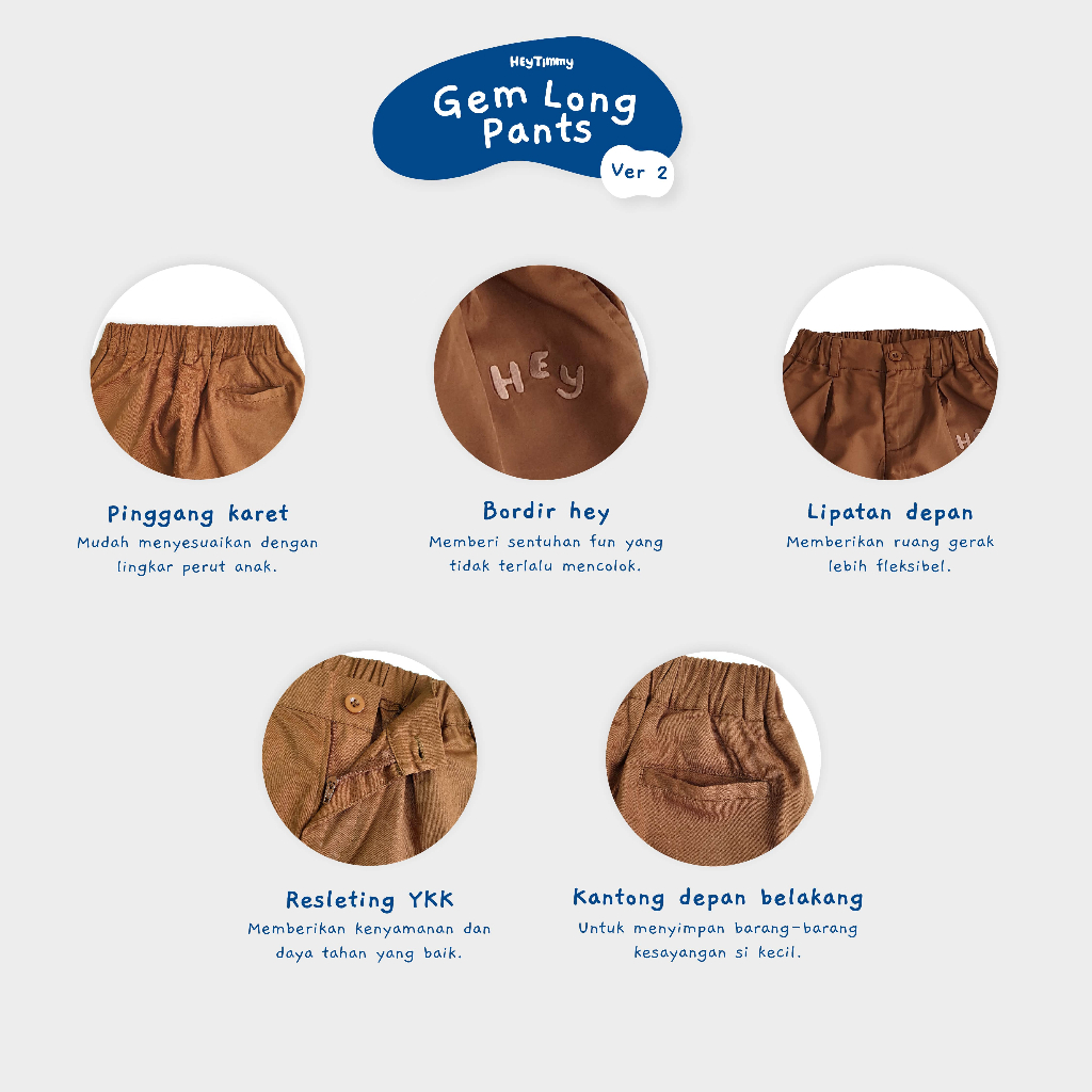 Heytimmy - Gem Pants / Celana Panjang Bahan Katun Anak Laki Laki / Gem Long Pants Variasi 2 / Warna Cream Choco Brown Ar