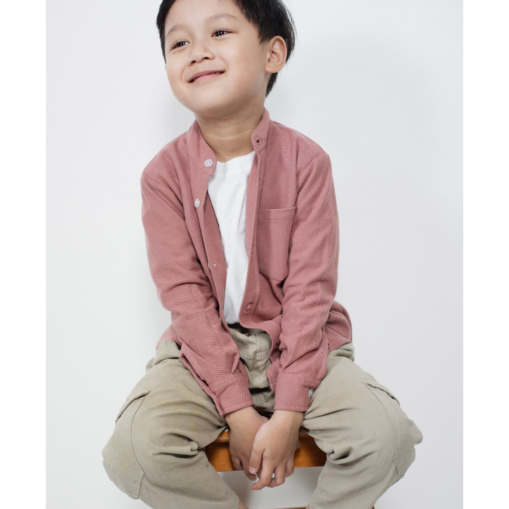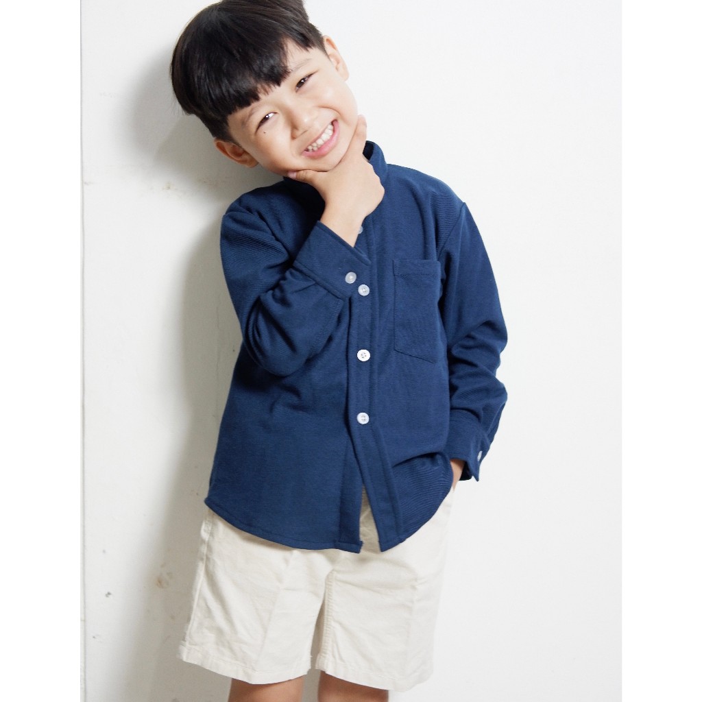 Kemeja Anak Cowok Usia 1-12 Tahun Polos Kerah Chiangi Lengan Panjang