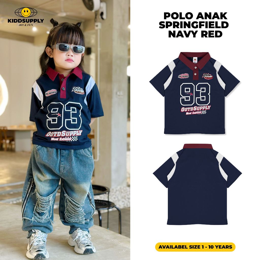 Kiddsupply Polo Rugby Shirt Springfield Navy Red L Kaos Anak | Polo Kids Kidsrgb006