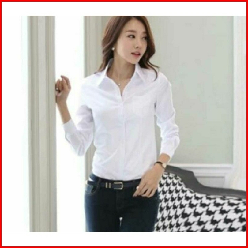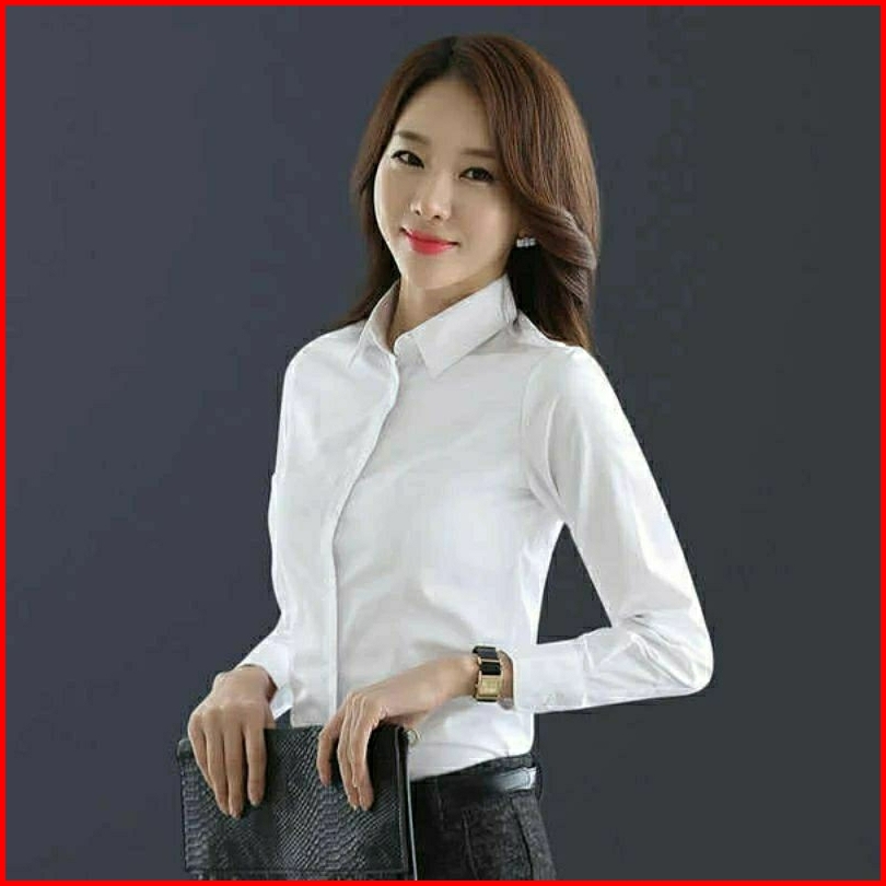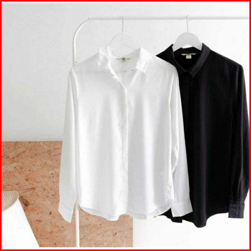Kemeja Wanita Lengan Panjang Size M L Xl Hitam Putih