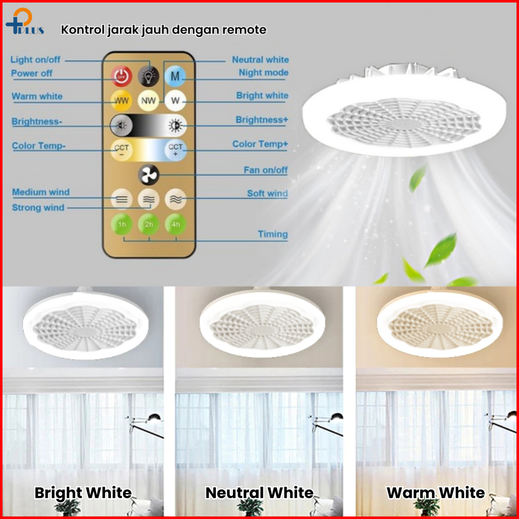 Pplus Lampu Kipas Angin Ac E27 60 Wat Lampu Led Kipas Angin Gantung Plafon Remote 2 In 1