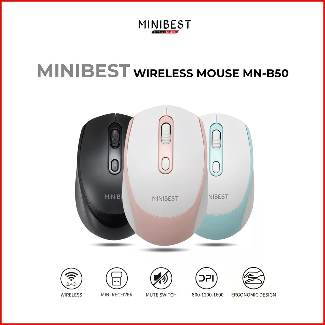 Minibest Mn B50 Mouse Wireless 2.4ghz Optical 1600dpi Dengan Receiver Usb Untuk Pc Laptop