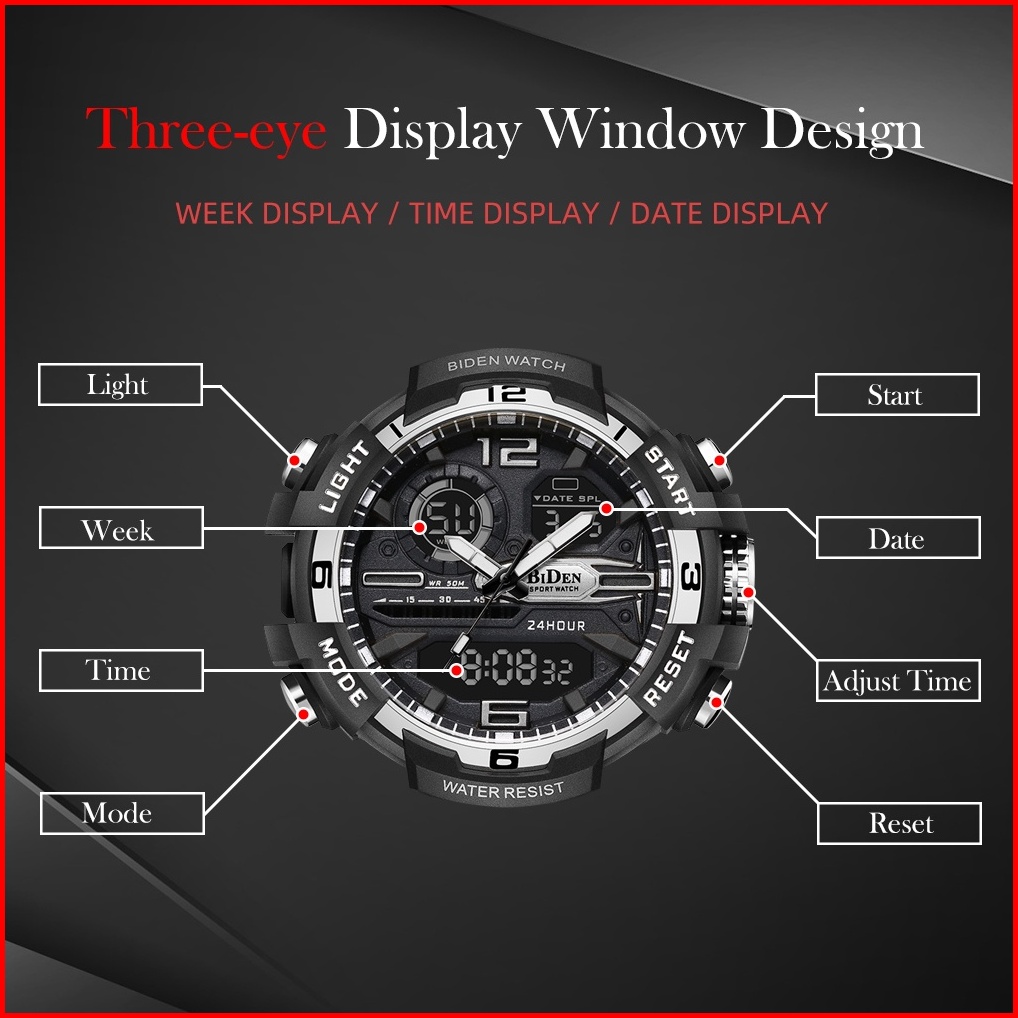 Biden Jam Tangan Pria Digital Anti Air Olahraga Tali Silikon Jam Pria Original Multifungsi Jam Tangan Cowok