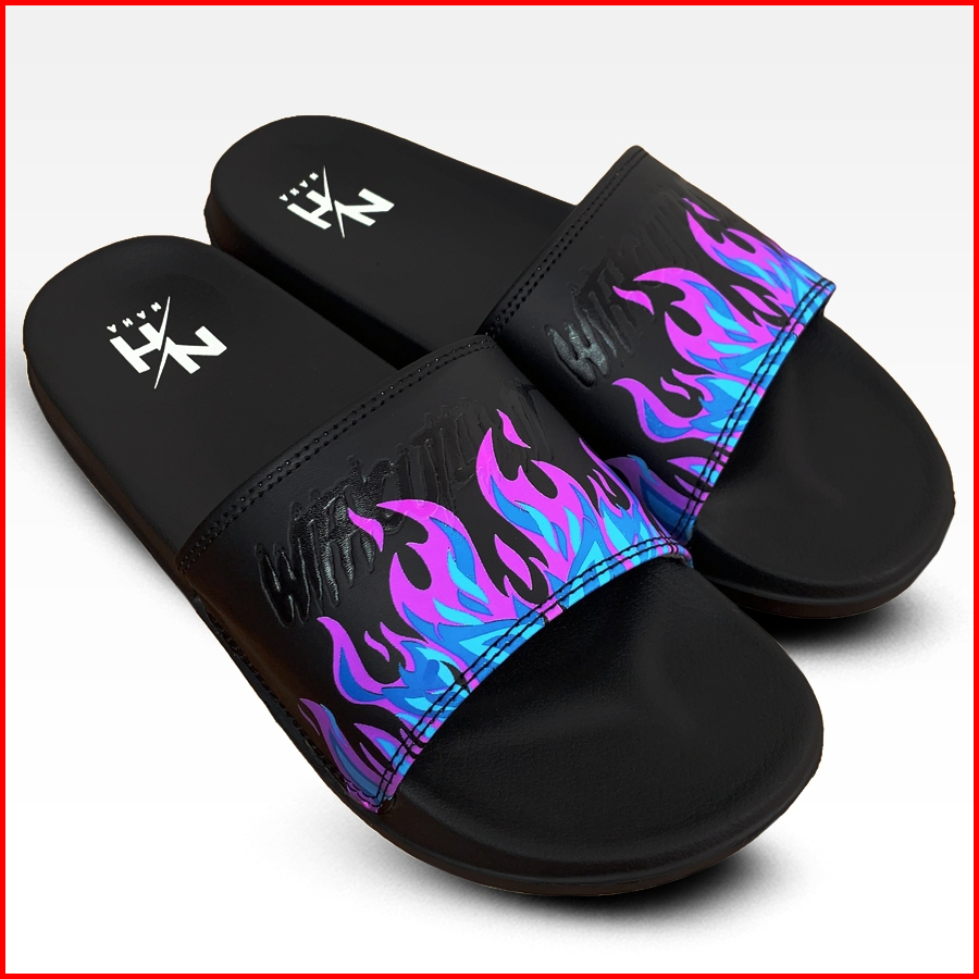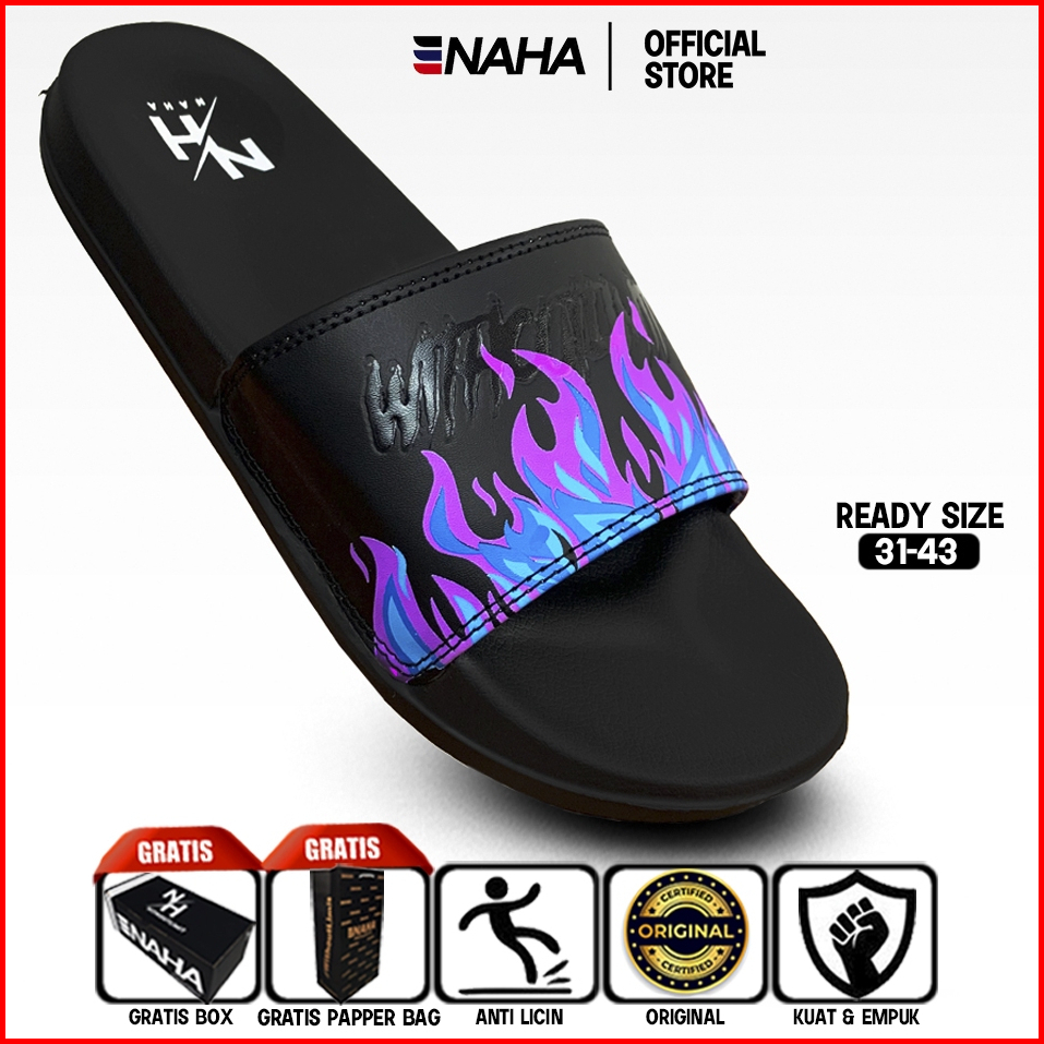Naha - Sandal Slop Pria Wanita Distro Karet Api Ungu Hitam Size 31 - 43