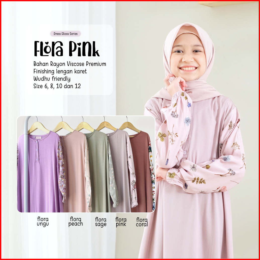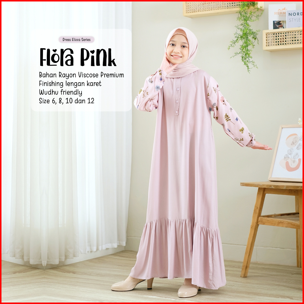 Gamis Anak Perempuan Erlimakids Dress Elizza Lucu Cantik Usia 5 - 12 Adem Lembut Banyak Anak Suka