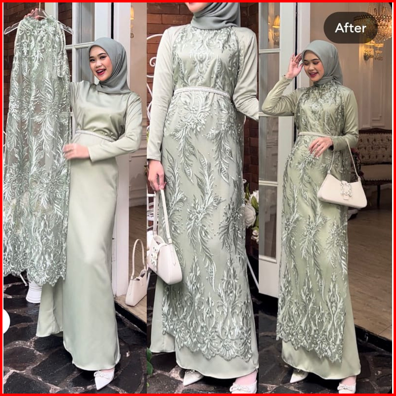 Promo - Savina Dress By Khaila Gamis Mewah Bridesmaid Termurah Aline Brokat Tule Tali Pinggang Organza Mutiara Satin Pes