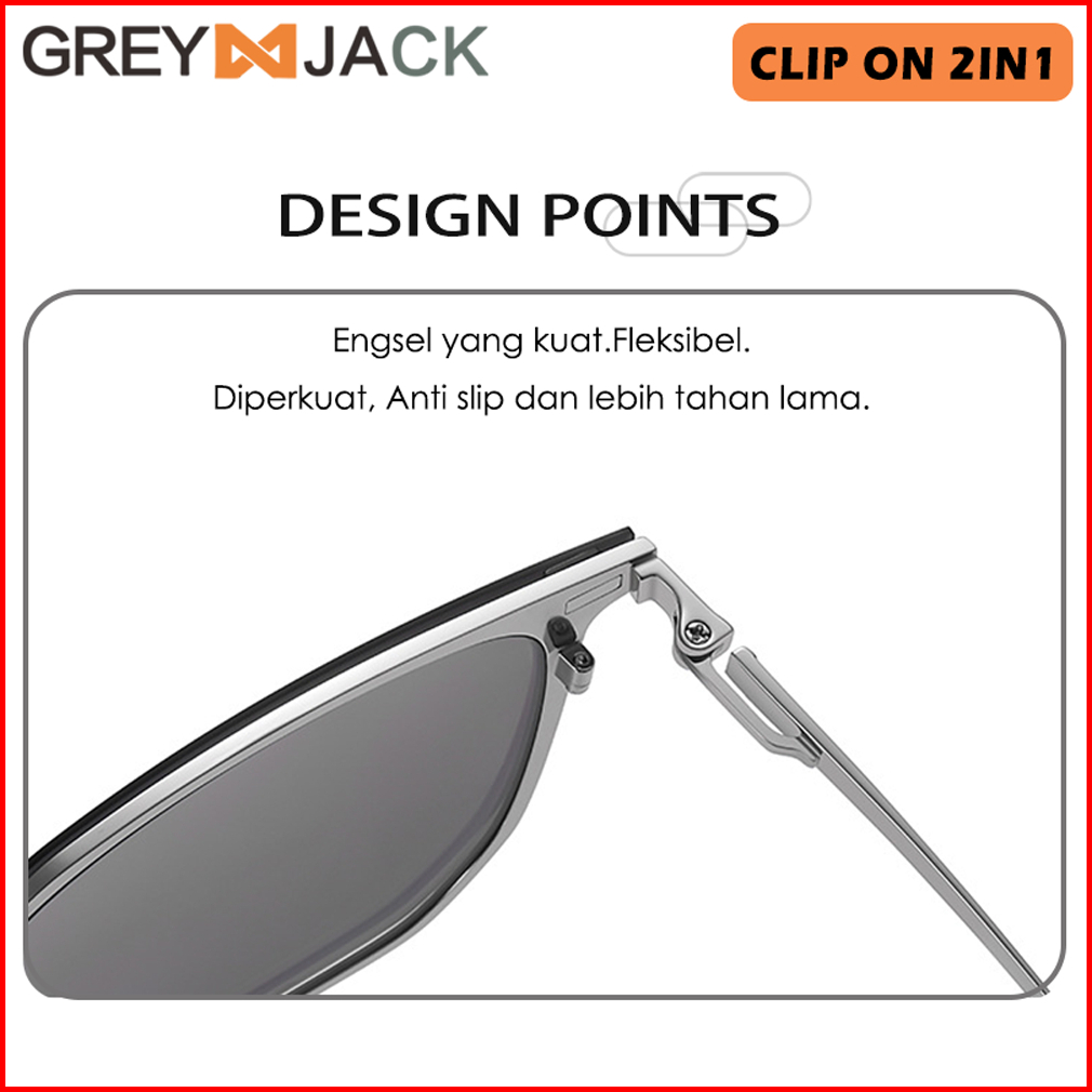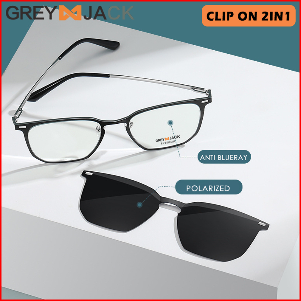 Grey Jack Kacamata Blueray Clip On 2in1 Polarized Bahan Metal Kotak Unik Pria Wanita Bisa Minus Antiradiasi Blueray Phot
